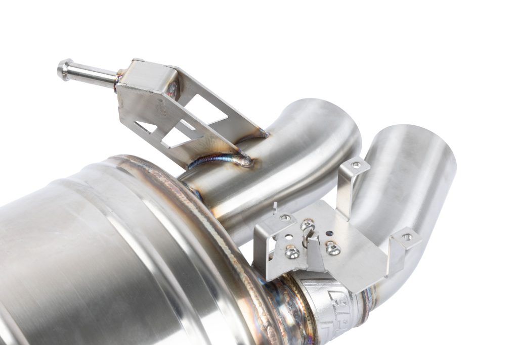 APR 為 Audi B9 RS4 與 RS5 打造的 Catback 中尾段排氣管系統,是一套從觸媒轉換器後端一路延伸至車尾的完整高性能排氣解決方案。此系統不僅能提升性能、強化排氣聲浪,同時在外觀上也極具辨識度,配備 RS 風格鑽石黑橢圓造型尾飾管,霸氣十足。