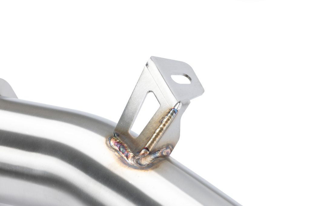 全系統採用 T304 不鏽鋼,搭配全管徑彎管工法(Mandrel Bent) 與 TIG 焊接工藝於APR美國工廠內生產完成,兼具耐用性與高質感。安裝方面,透過精準定位支架、OEM 規格滑套束環,以及 加強型中央通道支架,即使是大口徑管路也能輕鬆對位、無痛安裝。