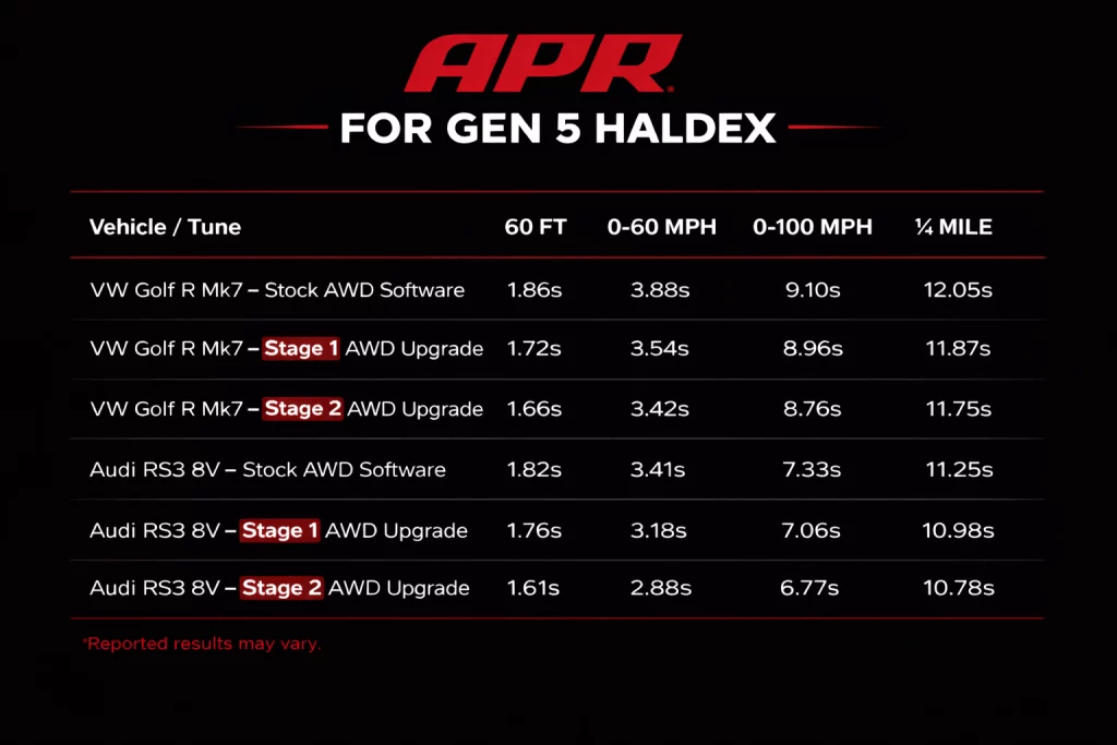升級版 APR Stage 2 AWD 控制器軟體,代表針對搭載原廠 Haldex 控制單元的第五代系統所能達到的最高性能優化層級。